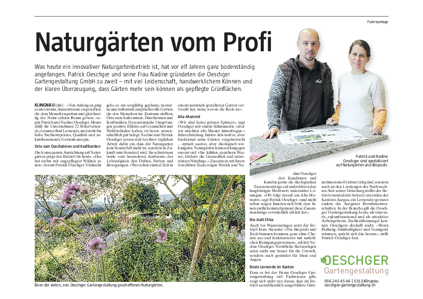 Zeitungsbericht über Oeschger Gartengestaltung - unsere Entwicklung in den 11 Jahren, seit es uns gibt